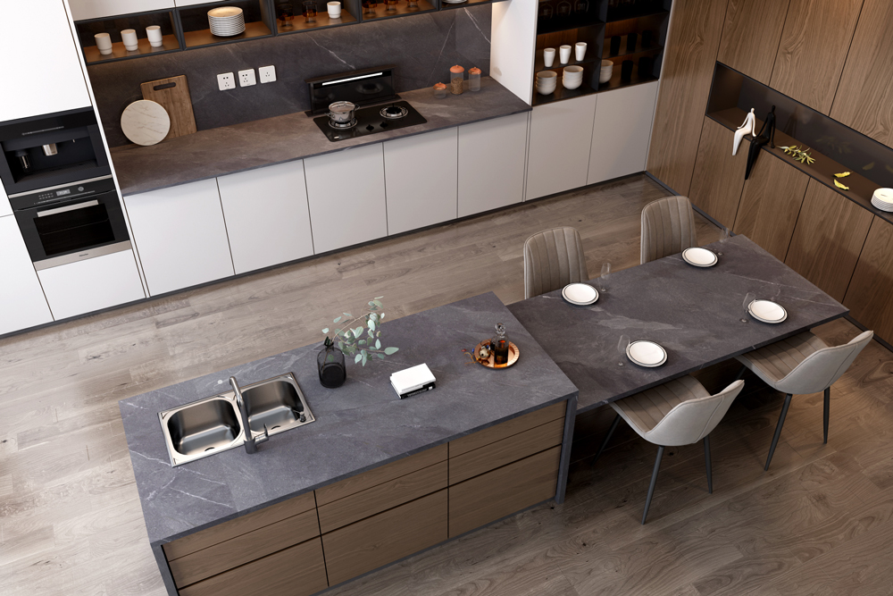 昆侖黑汲取自然的靈感,紋理穩(wěn)重且高雅,氣質里自帶天然的屬性,低調中詮釋奢貴,把大自然流動的生命力和藝術美感,完美的呈現(xiàn)在空間應用里。